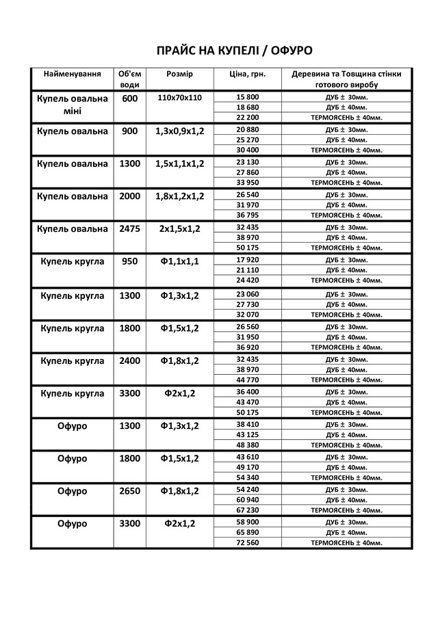 Завантажити прайс Офуро ( Японська лазня).